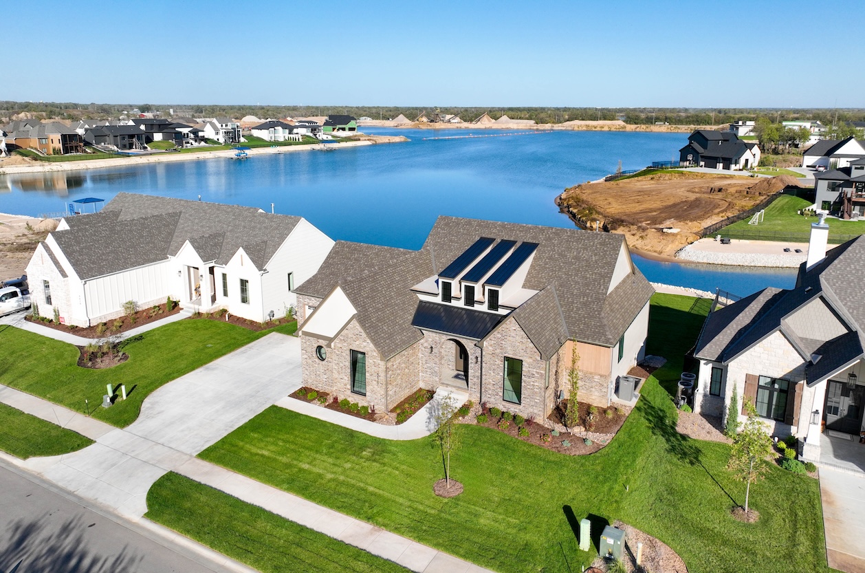 The Linden floor plan, showcased in the exclusive Castaway community, boasts stunning brick exteriors highlighted by elegant wide arches and a distinctive round accent window. This spacious lakefront home offers 5 bedrooms and 4 bathrooms, encompassing 3,913 square feet of beautifully designed living space. Backing onto a private beach, the residence features a luxurious master suite, an extended walk-in pantry, and floor-to-ceiling windows that provide breathtaking views of the lake.